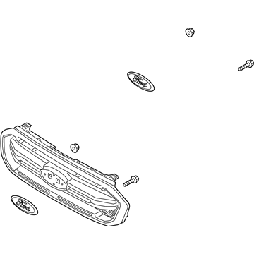 Hood and remove the panel that the radiator grille is mounted to, which requires detaching the headlight assemblies. Next, remove the screws or retaining fasteners to detach the grille from the vehicle. Installation is the reverse of the removal procedure, taking care not to overtighten the screws.