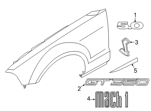 Ford Mustang parts. Parts like Exterior Trim - Fender are shipped directly from authorized Ford dealers and backed by the manufacturer's warranty. Parts fit for the following vehicle options. Engine: 4 Cyl 2.3 L GAS, 8 Cyl 5.0 L GAS, 8 Cyl 5.2 L GAS.